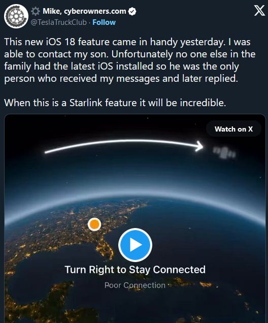 One user stated that the satellite messaging feature was “literally saving lives.” Another person highlighted how the feature allowed him to contact his son amid the communication blackout. Many people urged others to update to iOS 18 to gain access to this potentially lifesaving feature. Companies like T-mobile often use similar unverified statements of not enough cell towers “costing lives”, as they did during recent proceedings in Durango, Colorado.4
