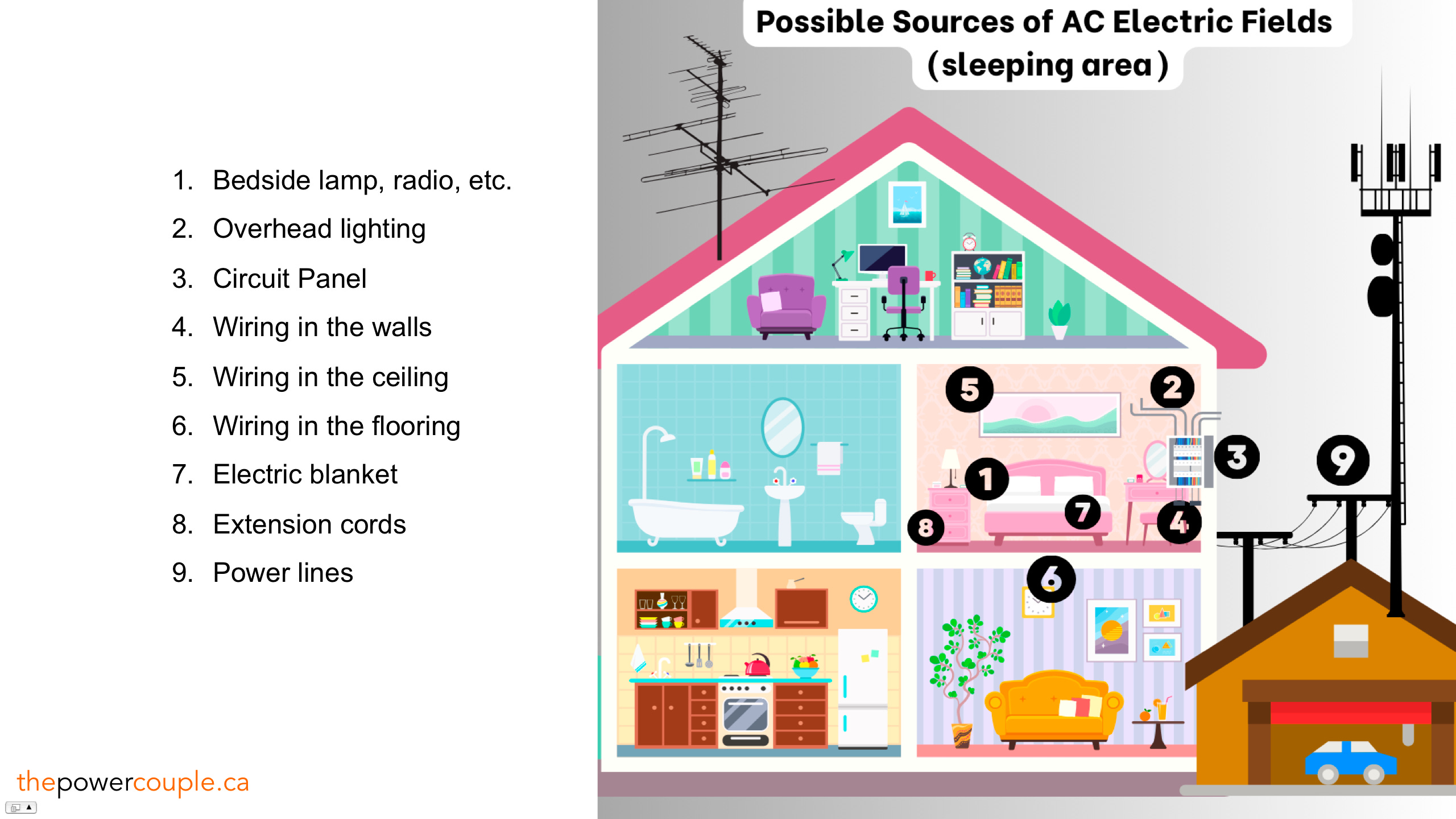 The only way to know for sure how much of an electrical field we’re picking up in our bedroom is by measuring and testing, by shutting certain circuits on or off, while being connected to a body voltage meter.