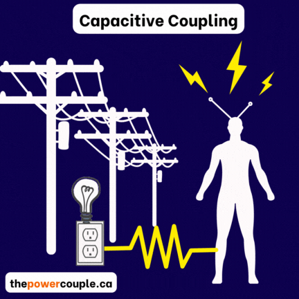 Because our skin is so conductive, the nearby electric fields can easily “collapse” or “couple” onto our skin, generating a measurable AC electrical voltage on the surface of your body.