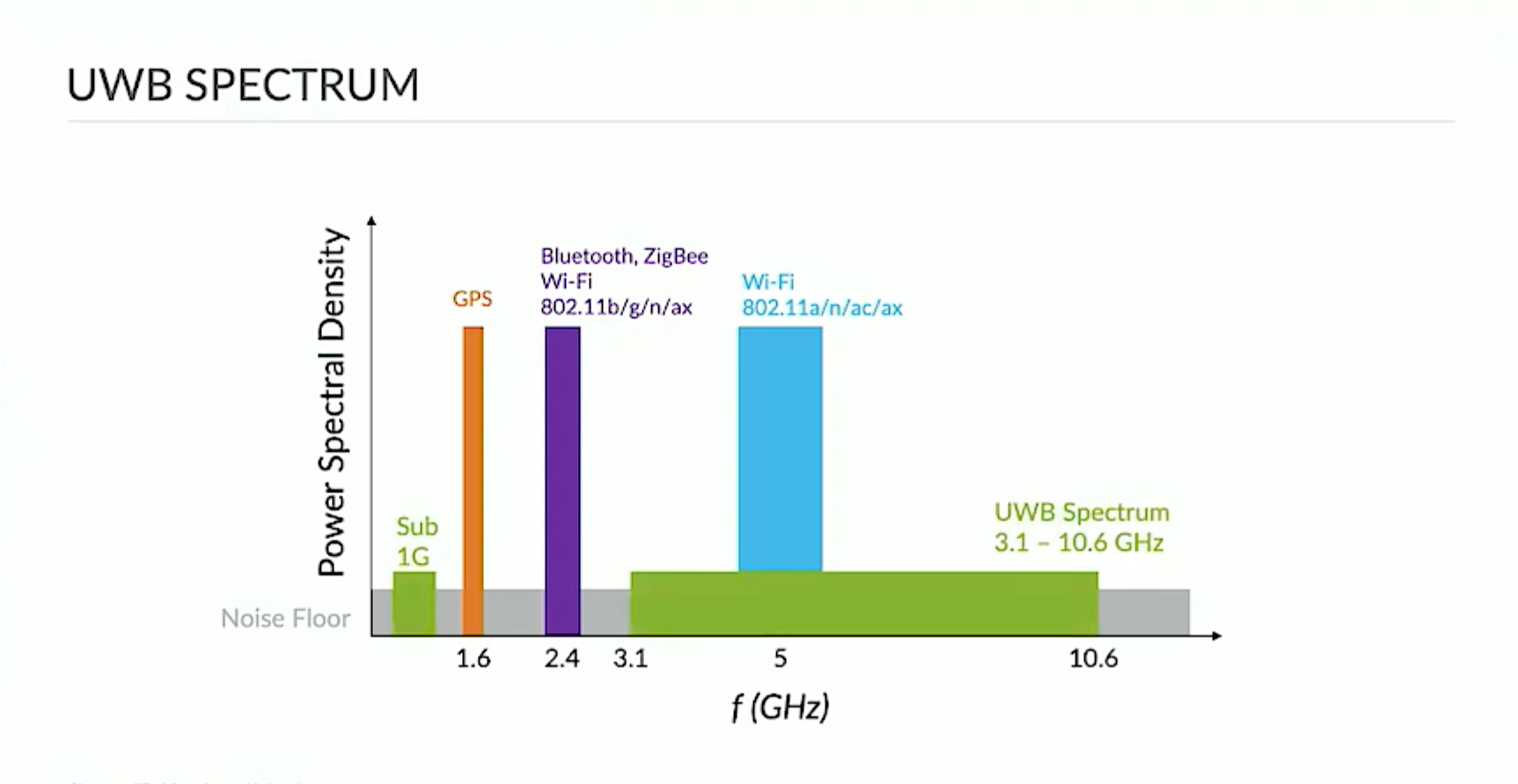 UWB constitutes a short-range Personal Area Network (PAN) that features high frequencies, high transfer speed, low-power consumption and precise positional accuracy, and the ability to share “huge chunks of data between devices.”7