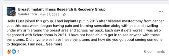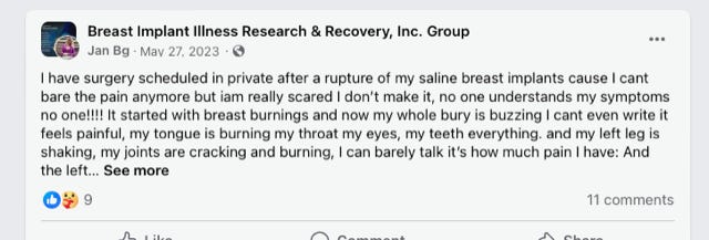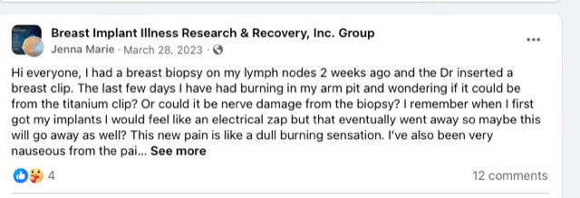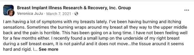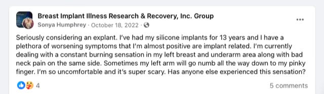 All of these women (below) began experiencing symptoms with their breast implants, even after years of having them, pursuant to the deployment of 5G in 2020. The following excerpts were taken from a public Facebook group where women are desperately searching for answers.