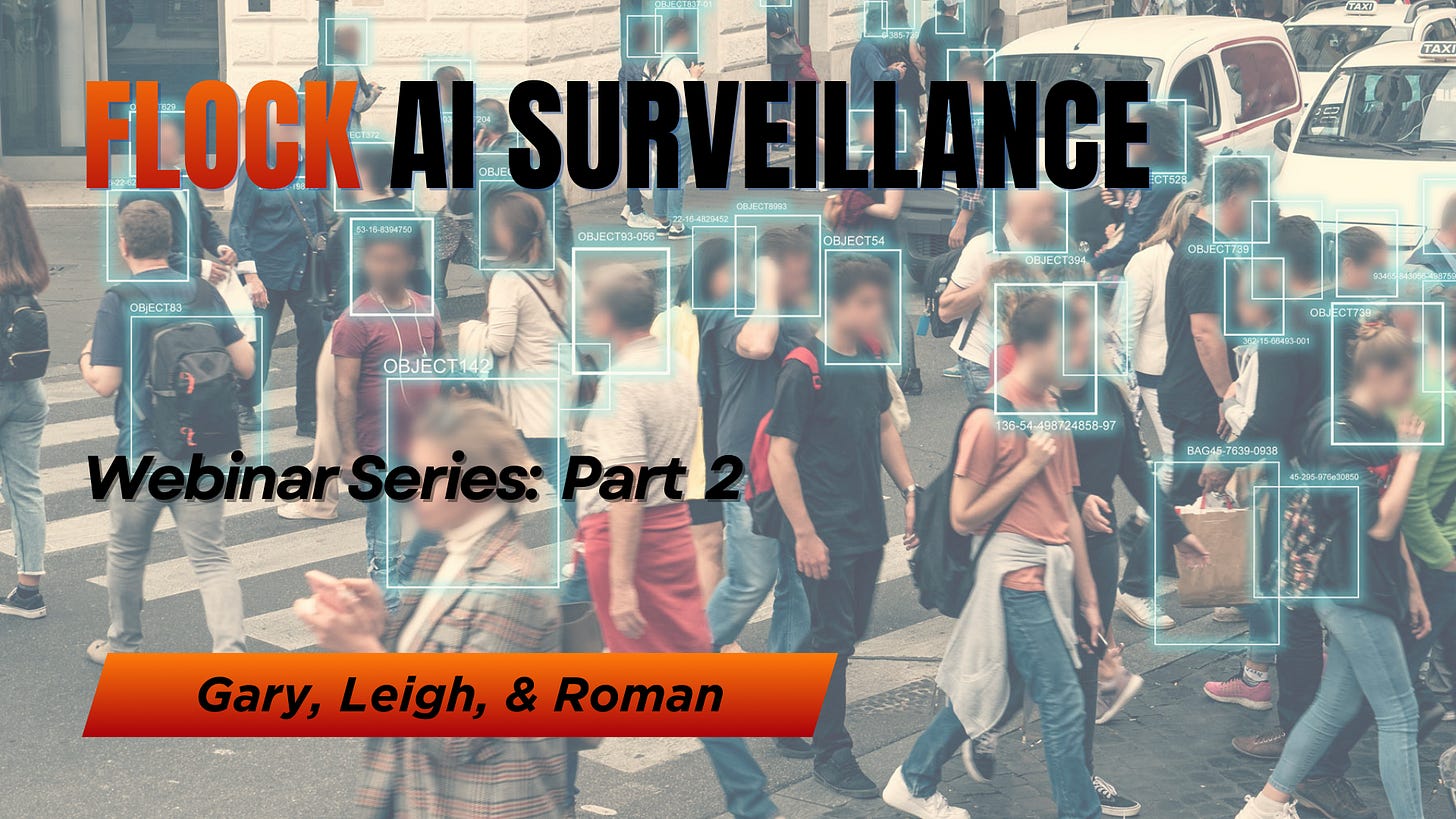 I, along with my colleagues here in Arizona, are creating a trove of information that other towns can use when battling the Flock AI surveillance grid. We’ve knocked on doors, met with officials, and have been conducting a series of webinars that I have posted here.
