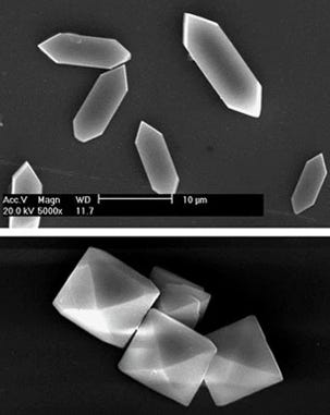 Certain plants create oxalic acid as a defense mechanism against predatory insects, and in order to protect themselves from excess calcium in soil. When oxalic acid attaches itself to a mineral, it becomes an oxalate. The mineral calcium has a strong affinity for oxalate, thus becoming calcium-oxalate. Crystals of calcium oxalate start out as particles and nano-crystals that tend to grow larger in size. Oxalate crystals can also coalesce into “stones.”2