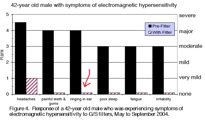 Magda Havas and Dave Stetzer studied the effect of kHz frequencies on tinnitus7, and found that these individuals had high levels of dirty electricity in their homes. Some participants noticed that when the buzzing sound is loud, the dirty electricity in their home is high. When dirty electricity (G/S) filters were installed, these sounds became less audible.
