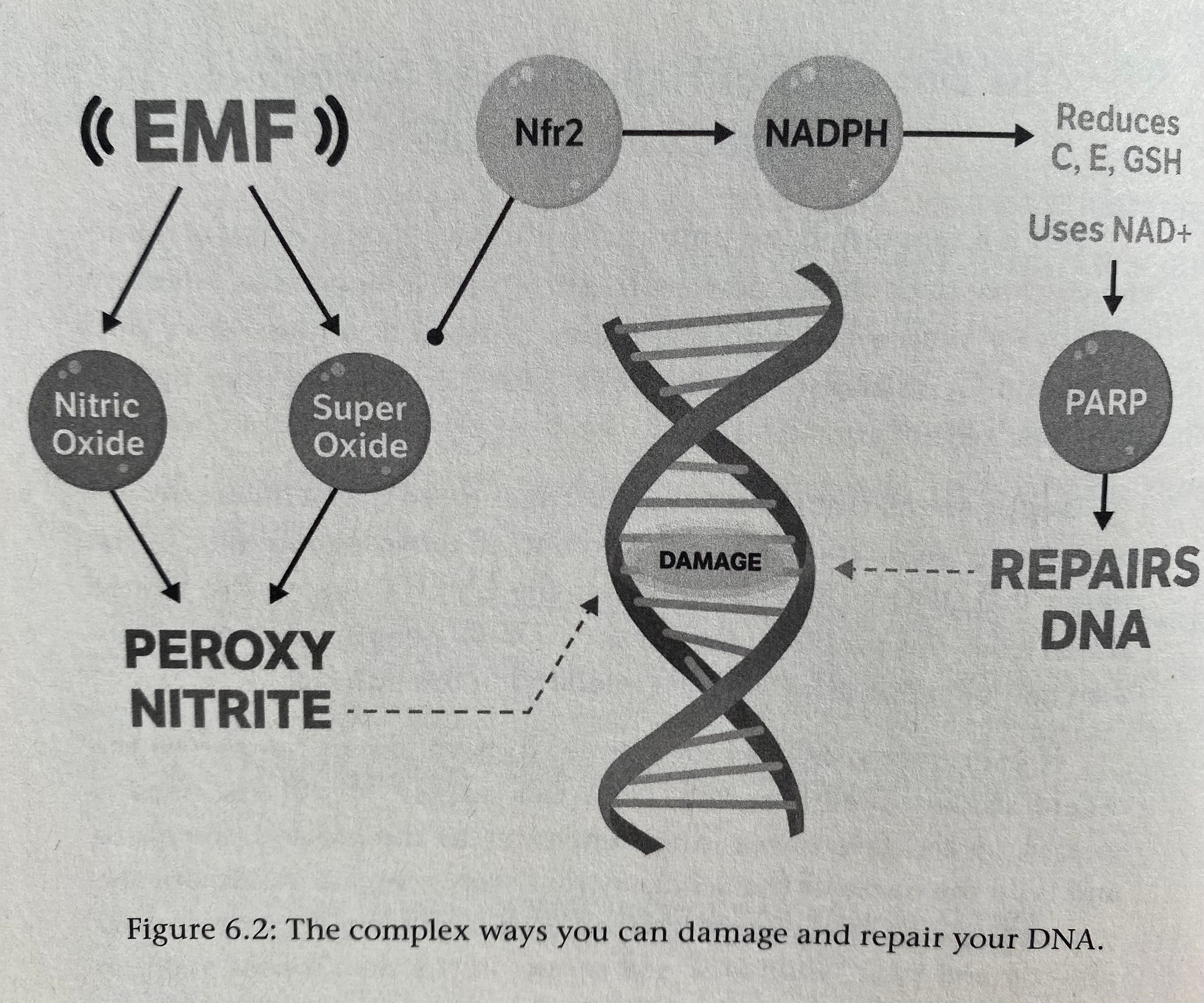 While it’s true that EMFs from wireless, known as nonionizing radiation, don’t have enough energy to directly break the bonds in our DNA, they do so indirectly. As a result, EMFs cause the same type of damage as those from X-rays (ionizing).
