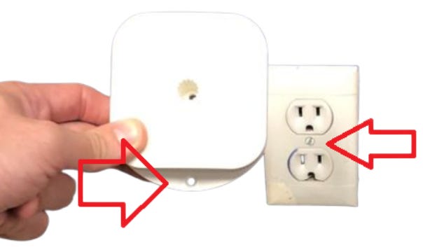 The first alien device I saw was a flickering white box plugged in, and screwed into the plate of the electrical outlet. Butter knife in hand, I unscrewed it, just so I could unplug it from the wall. Luckily I was able to turn the power off at the circuit breaker, located in the bedroom, before unscrewing the bugger. Upon further research, I found out that this was a noise detector.