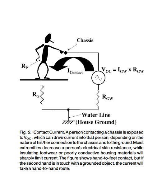 Here’s how we interact with contact current EMF via a chassis (e.g. appliance, conductive surface):