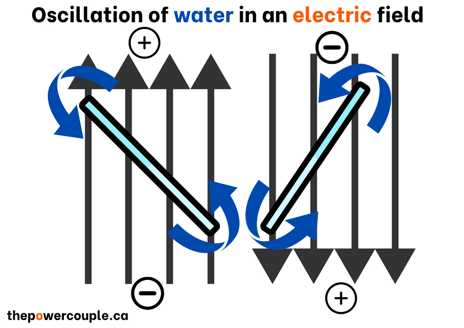 This gives rise to friction, caused mainly by the high oscillation rate of the water molecules in the electromagnetic field (EMF). This is also called diathermic heating, whereby EMFs create heat.