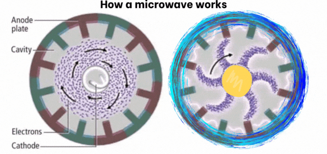 Government agencies and mainstream websites will tell us that there’s nothing to fear when it comes to cooking our food in a microwave, because the process only involves heating food by “exciting” the water molecule. The “magnetron,” the core of the oven, generates microwaves that penetrate into the food and cause water molecules within the food to vibrate at a frequency of approximately 2.45 GHz (2.5 billion times per second).