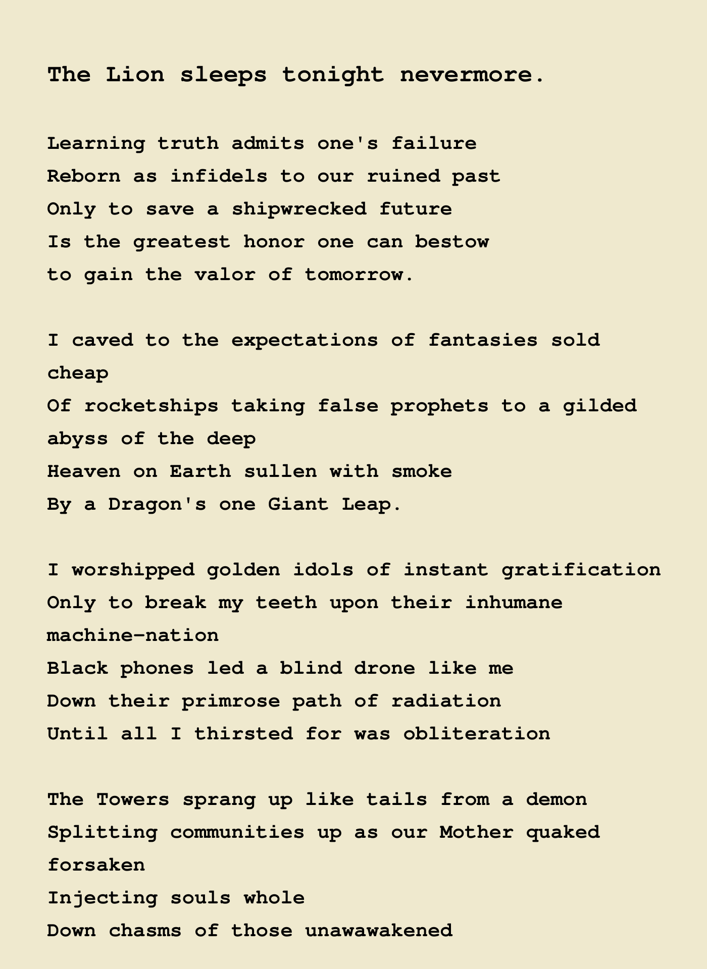 The Lion sleeps tonight nevermore.