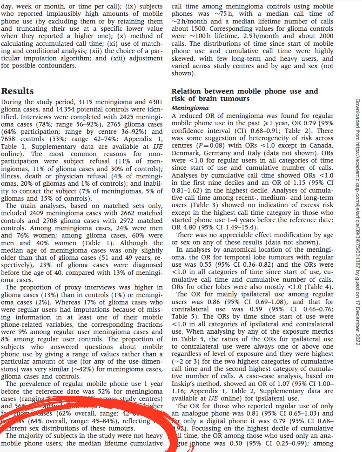 You’ll see below where I circled in green, the odds of having brain cancer doubled once you were a heavy cell phone user.
