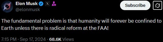This is how tyranny is able to live freely, and dictators root out their opposition. For instance, Musk called for FAA Chief Michael Whitaker’s resignation in September after Whitaker proposed fining Musk’s company SpaceX over $600,000 in civil penalties for failing to follow license requirements during two launches in 2023. Whitaker told a congressional panel at the time that fines were “the only tool we have to get compliance on safety matters.”