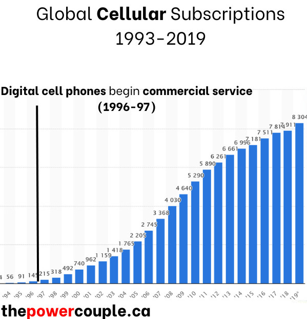 Prior to 1980, only microwaves were commercially available in any significant quantity. The general public rapidly adopted other EMF (wireless radiation) technologies in laptops and cell phones after 1990.